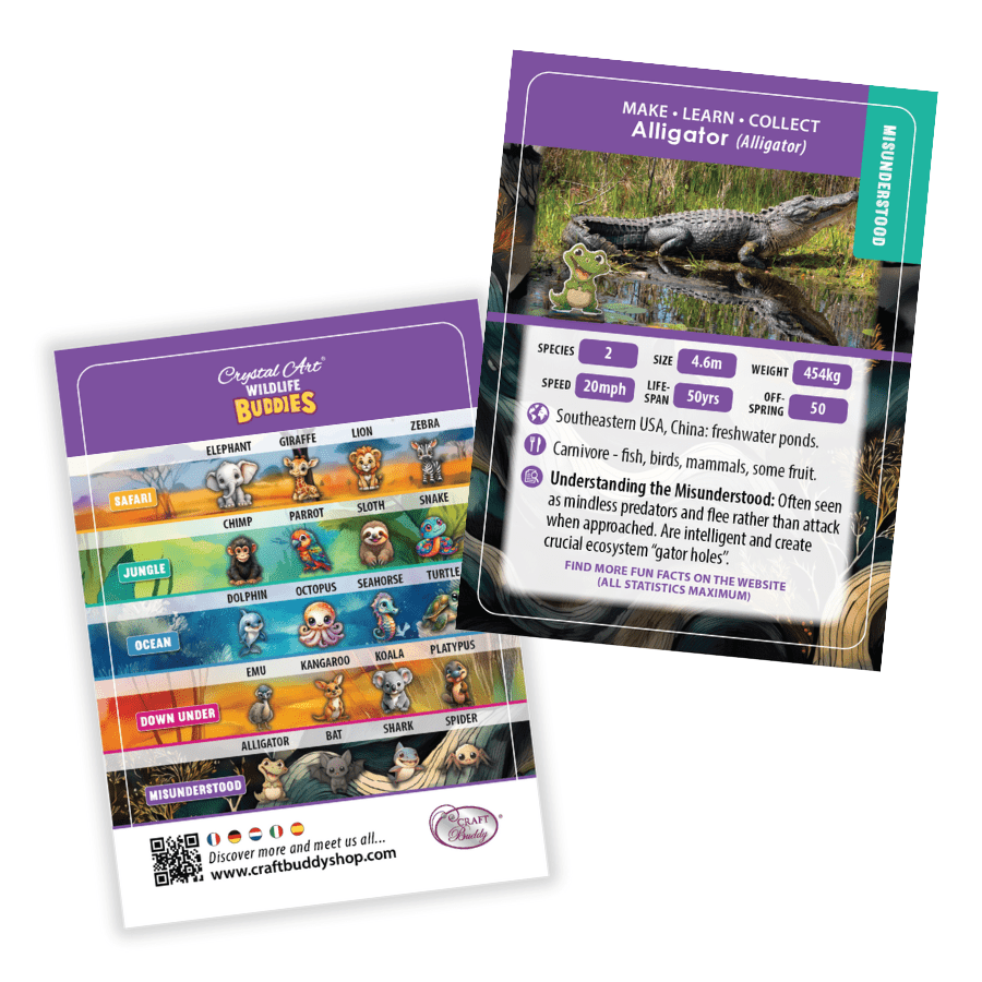 New for 2025, Craft Buddy brings you the collectable Crystal Art® Wildlife Buddies series. Featuring 20 original animal designs, each Crystal Creature has been given the diamond painting treatment, with fur, fins, tentacles and tails that will sparkle and shine. The new 'Series 5' range is made to be collected, whether you choose your favourite species or habitat. Why not go on a trek across wild deserts or swim the deep blue sea and collect the entire range!
