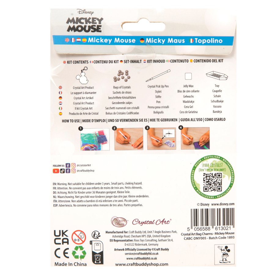 Each Crystal Art® Bag Charm kit comes with everything you need to complete the project. It's super fun and relaxing to make with a simple adhesive template to add your gems to, and clear instructions. Carry a piece of Disney's magic world with you wherever you go with this cheerful character charm!