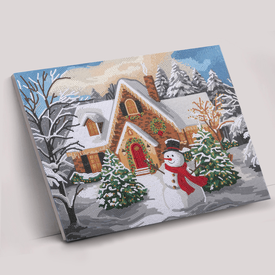 Snowy house part 3 crystal art canvas kit close up