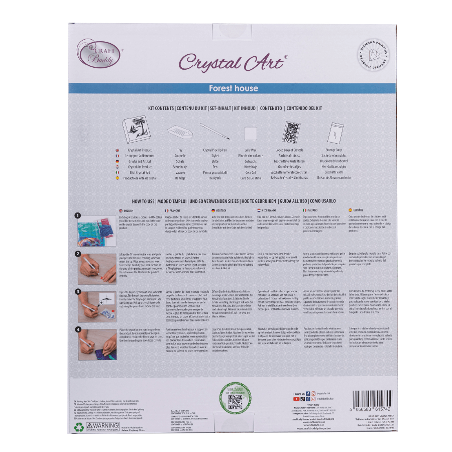 A clearing in the forest uncovers this cute cottage, probably housing a hobbit! The Craft Buddy ‘Forest House’ Crystal Art® Canvas Kit is so colourful, it will be a joy to any crafter. With every colour of gem imaginable, you will be spoilt for choice which area to start adding your diamonds to! This large 40cm x 50cm portrait canvas will produce a delightful piece art for you to display at home, and as it is ‘full crystal’, no part of this image is left plain and will glimmer and shine!