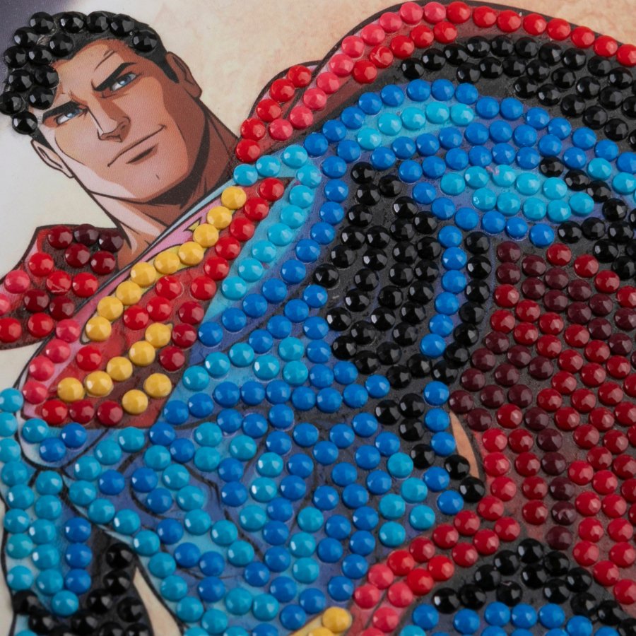 Introducing the 'Superman' Crystal Art® Card Kit that captures the iconic Superman in all his glory, poised for action against a dynamic backdrop. Officially licensed by DC, this Superman DC Crystal Art® Card Kit is a perfect craft for comic fans and aspiring heroes alike, and a shining gift to send a message of hope and strength.