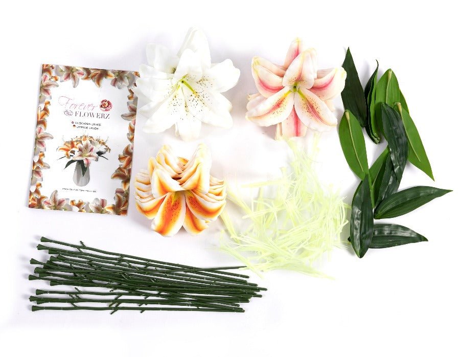 - This is a complete kit that comes with stems included and has 3 colours of Lilies.