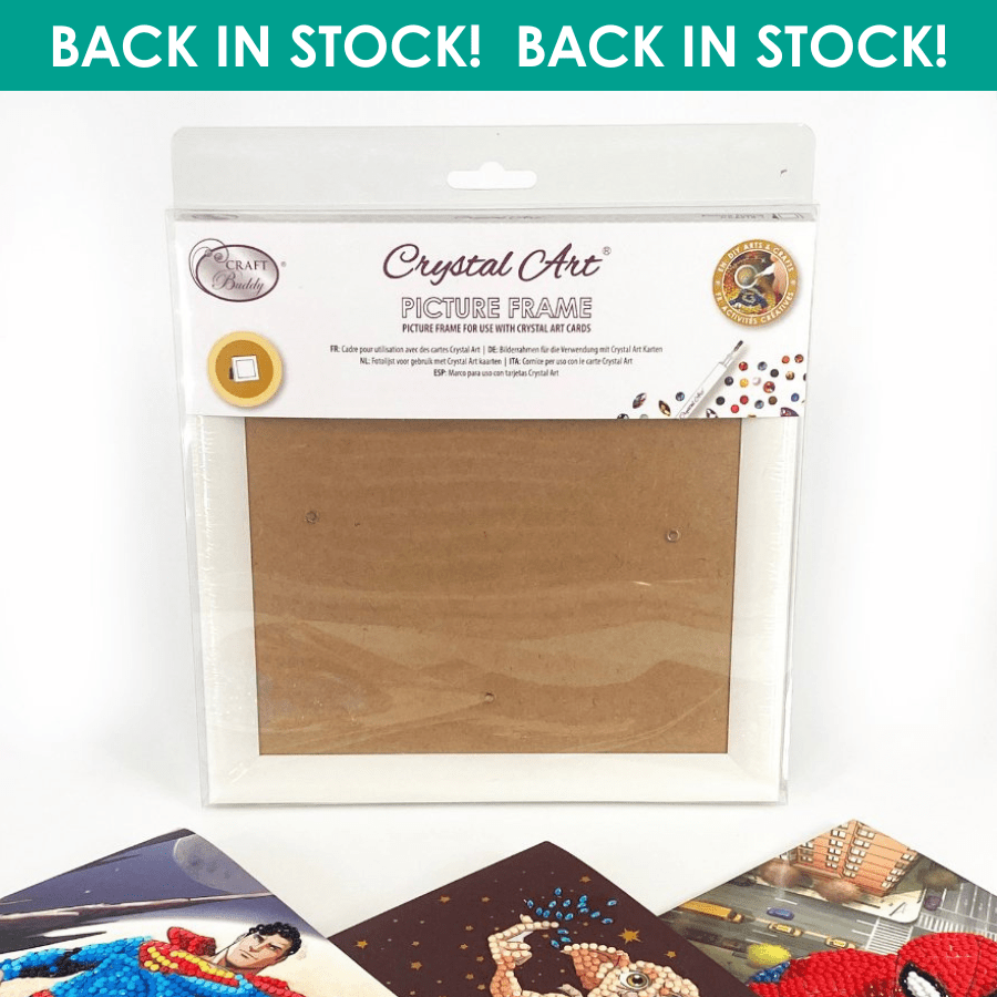 Our lightweight plastic frames come in two finishes - matt and gloss. It is safe for all ages, as there is no glass front, unlike traditional photo frames. This means the sparkle of the Crystal Art® will not be dulled, and will catch the light wherever you place it. It has a fold out back, so it can stand on any table, desk or mantlepiece and a hook for easy hanging on a wall. With so many fantastic Crystal Art® cards to choose from, you could create an amazing wall of frames filled with diamond art imagination.